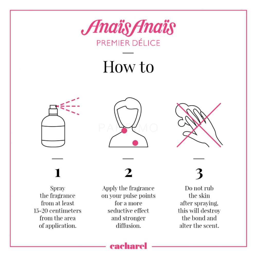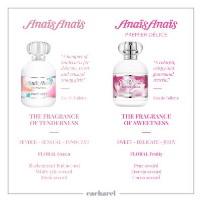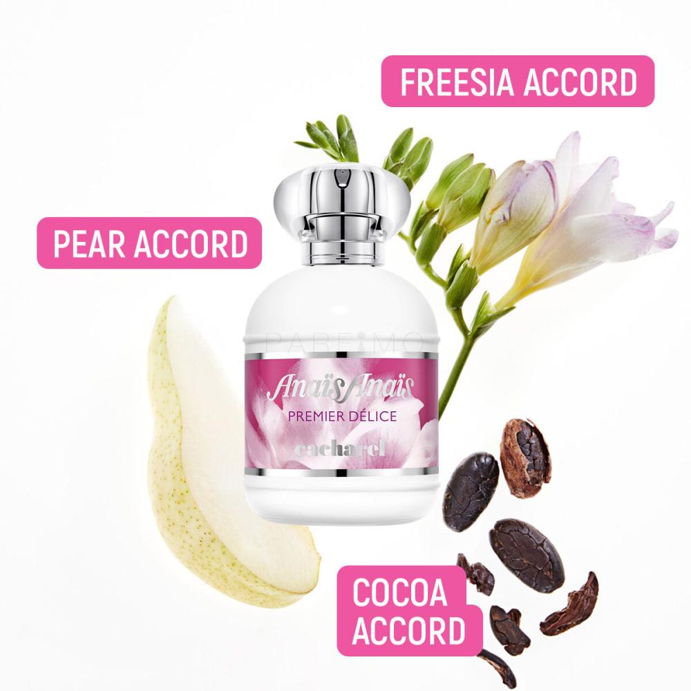 Der erfrischende Damenduft Cacharel Anais Anais Premier Delice wurde im Jahr 2014 auf den Markt gebracht. Sprudelnde Töne von Bergamotte, Orange und Zitrone öffnen diese Essenz. Der Duft geht langsam in einen romantischen Hauch von Frühlingsblumen über, die frische Noten bieten. Die zarte Komposition des Parfüms Cacharel Anais Anais Premier Delice wird von einem Hauch Zeder und Kakao abgerundet.