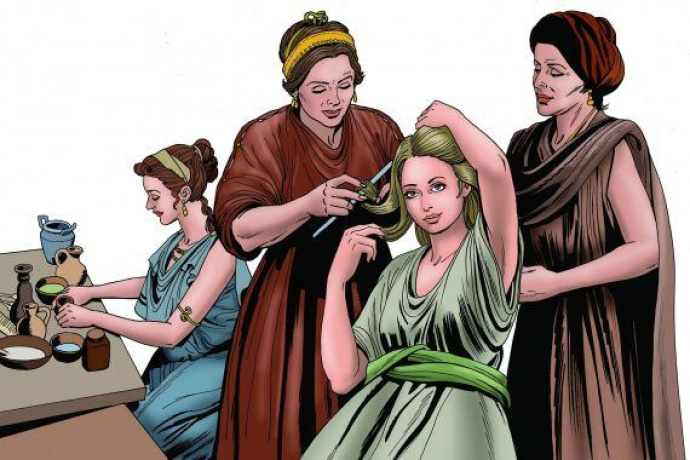 Antike Griechinnen und Römerinnen pflegten ihre Haare mit Olivenöl und färbten regelmäßig ihre Haare. Römische Frauen hellten ihre Haare angeblich mit Taubenkot auf und eine weitere Kuriosität stellte selbstgemachte schwarze Haarfarbe dar. In Essig eingelegte Blutegel ließ man ein paar Monate in bleiernen Gefäßen gären und mit der entstandenen Paste wurde das Haar schwarz gefärbt. Aber jetzt Schluss mit Hausrezepten fürs Haarefärben. Welche Frisuren wurden damals getragen? In Griechenland waren Dutts mit ein paar Haarsträhnen, die das Gesicht umspielten, üppig verzierte Diademe, Stirnbänder und metallene Haarklammer, die den Gesellschaftsstatus widerspiegelten, angesagt. Römerinnen bevorzugten einfache Schmucke und offene Haare.