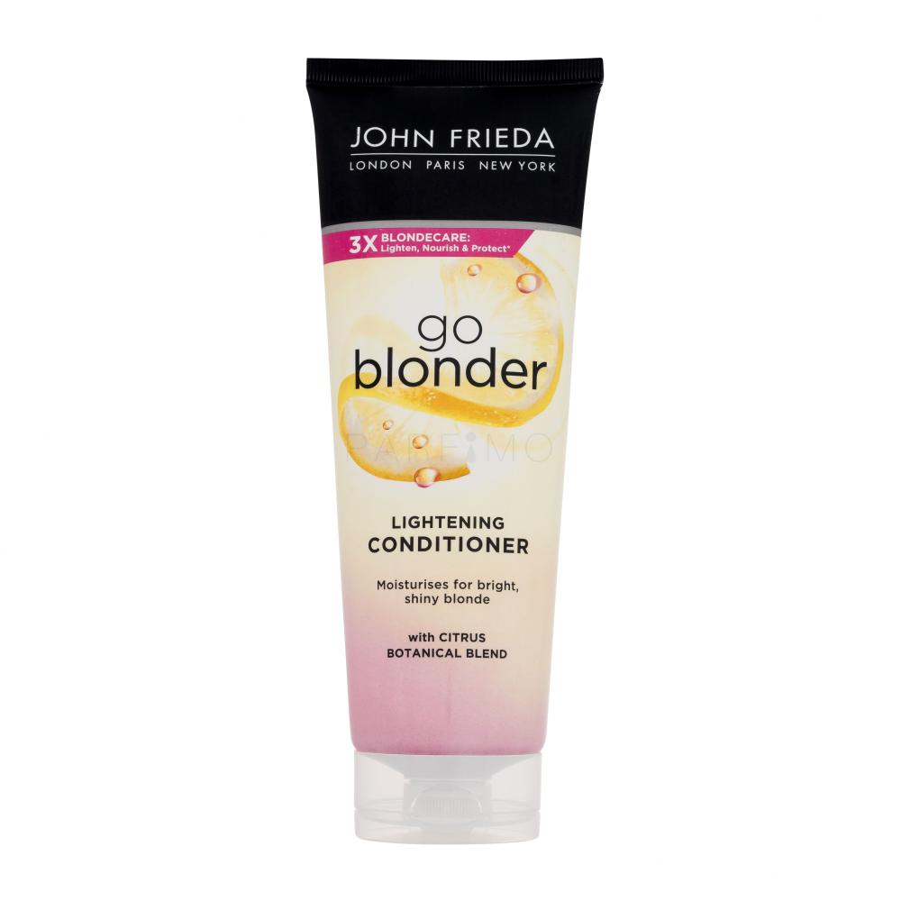 Der Conditioner für das Aufhellen der Haare John Frieda Sheer Blonde Go Blonder verlängert die Farbbrillanz, hellt die Haarfarbe auf und schenkt ihr Strahlkraft. Der Conditioner verleiht dem Haar Glanz und Fülle. Er spendet ihm intensiv Feuchtigkeit und nährt es, damit Sie schöne glanzvolle und vitale Haare haben. Nach Gebrauch lässt sich das Haar einfach entwirren, stylen und kämmen.