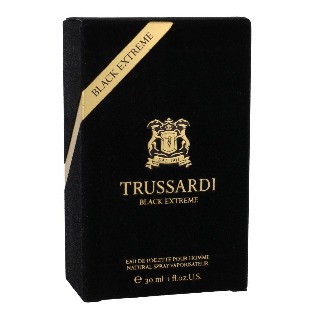 Kraft, Leidenschaft und Mut das alles kombiniert der Herrenduft Trussardi Black Extreme. Das Parfum Black Extreme repräsentiert den modernen Mann, der mit sich selbst zufrieden ist, gern neue Hürden überwindet und möchte seine wahre ICH präsentieren. Die reichhaltige Komposition enthält frisch Zitrustöne, die sich mit den marine Noten vermischen. Herz durchdringen süsse Pflaumen und Iris Töne. Die Basis setzt sich zusammen aus warmen Holznoten und intensiven Ledertönen. Der energische Herrenduft Trussardi Black Extreme wird Sie von Anfang an fesseln und lässt Sie nicht mehr los.